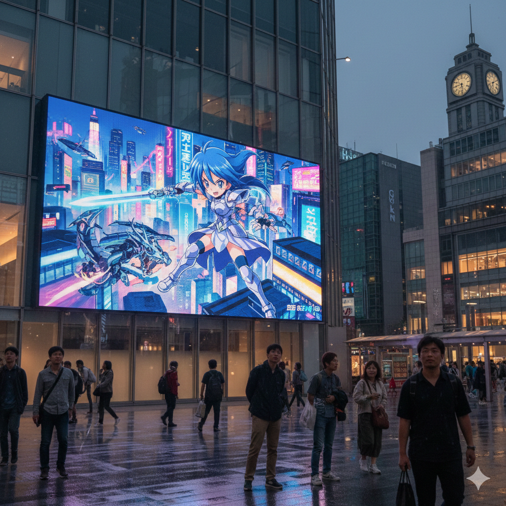 - 想定用途:屋外広告、店舗ファサードサイン、駅前ビジョン、イベント看板、街頭案内。